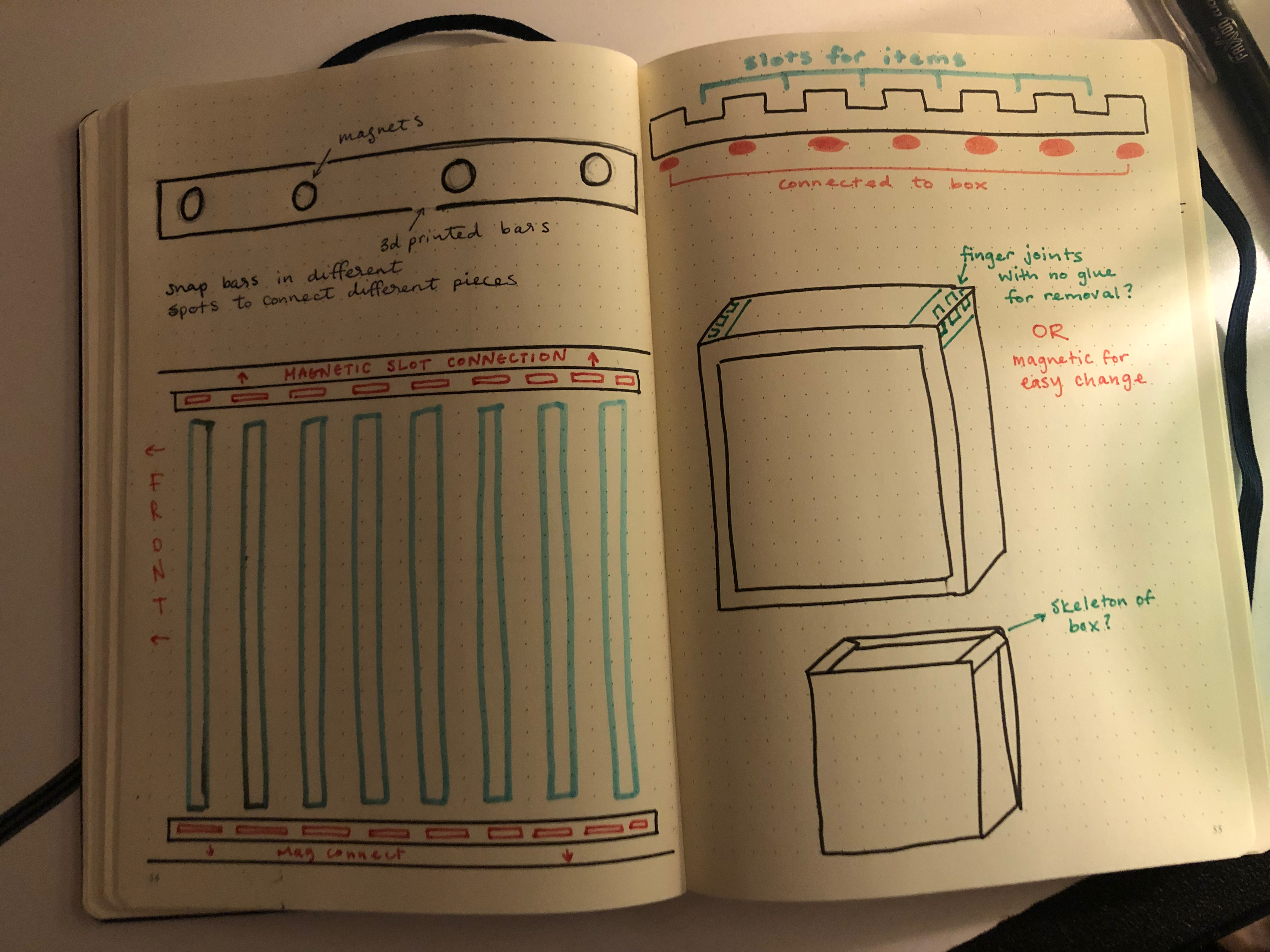 The pieces have an inner lip to support faces and grids popping in and out. I knew that some heavy objects could be placed in the box, so I thought the lip would give stability and it meant that inserting faces into the top of the box still kept the surface flat.