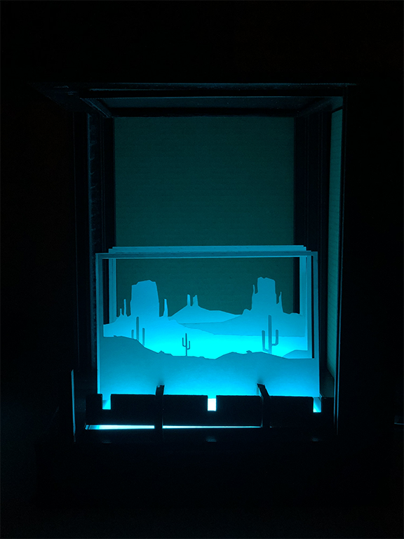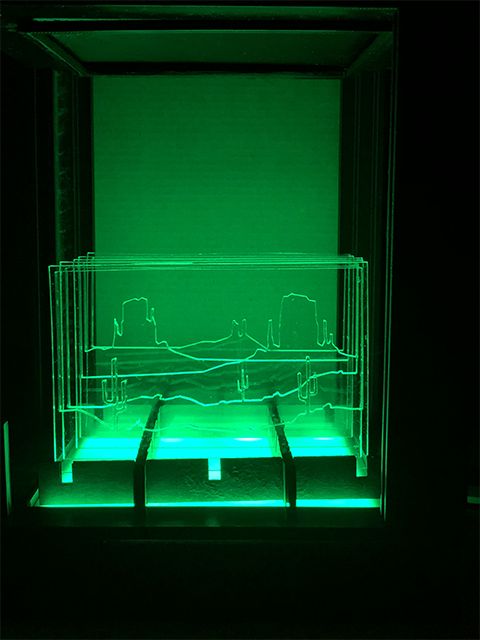 I knew I wanted it to be as flexible as possible, so I designed a box where you could switch out all six faces. The box with the LED lights could sit underneath it to allow the light to fill the box while still protecting the electronics.