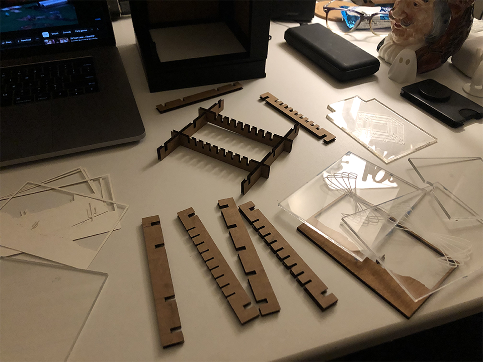 - Using failed pieces of the prints as test pieces when going on campus to laser cut cardboard slots
