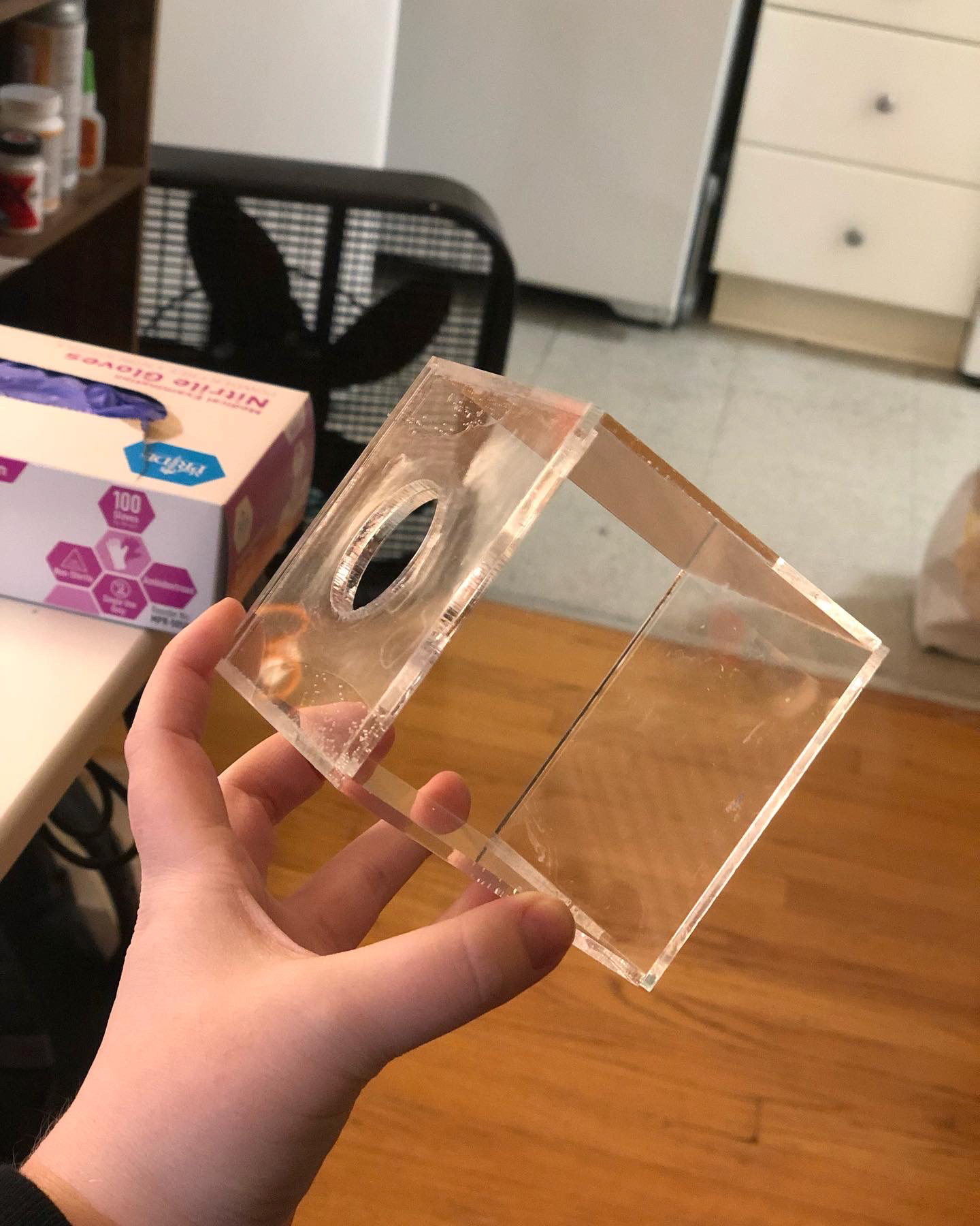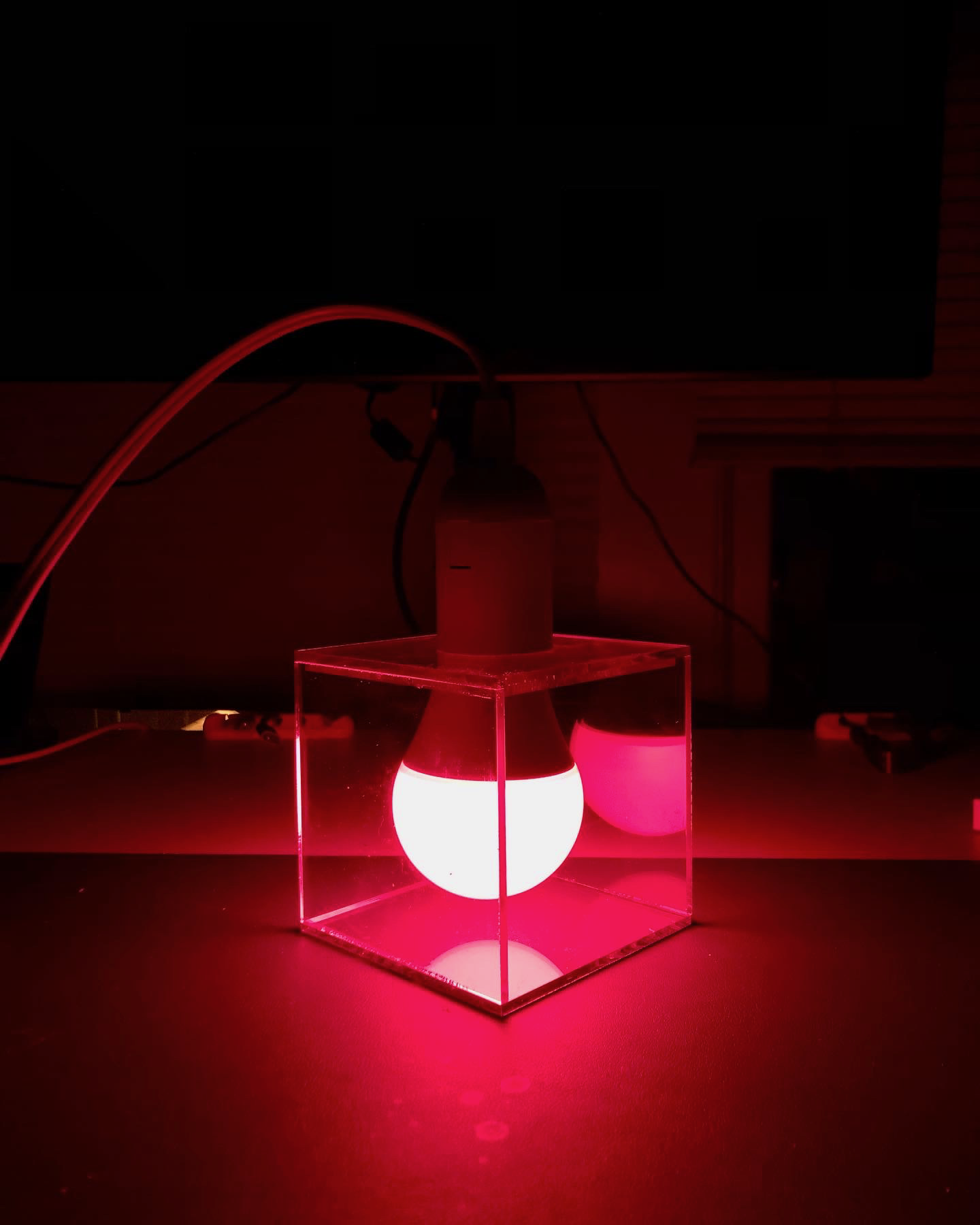 The adhesive cured very quickly, and now I have an acrylic cube lamp!