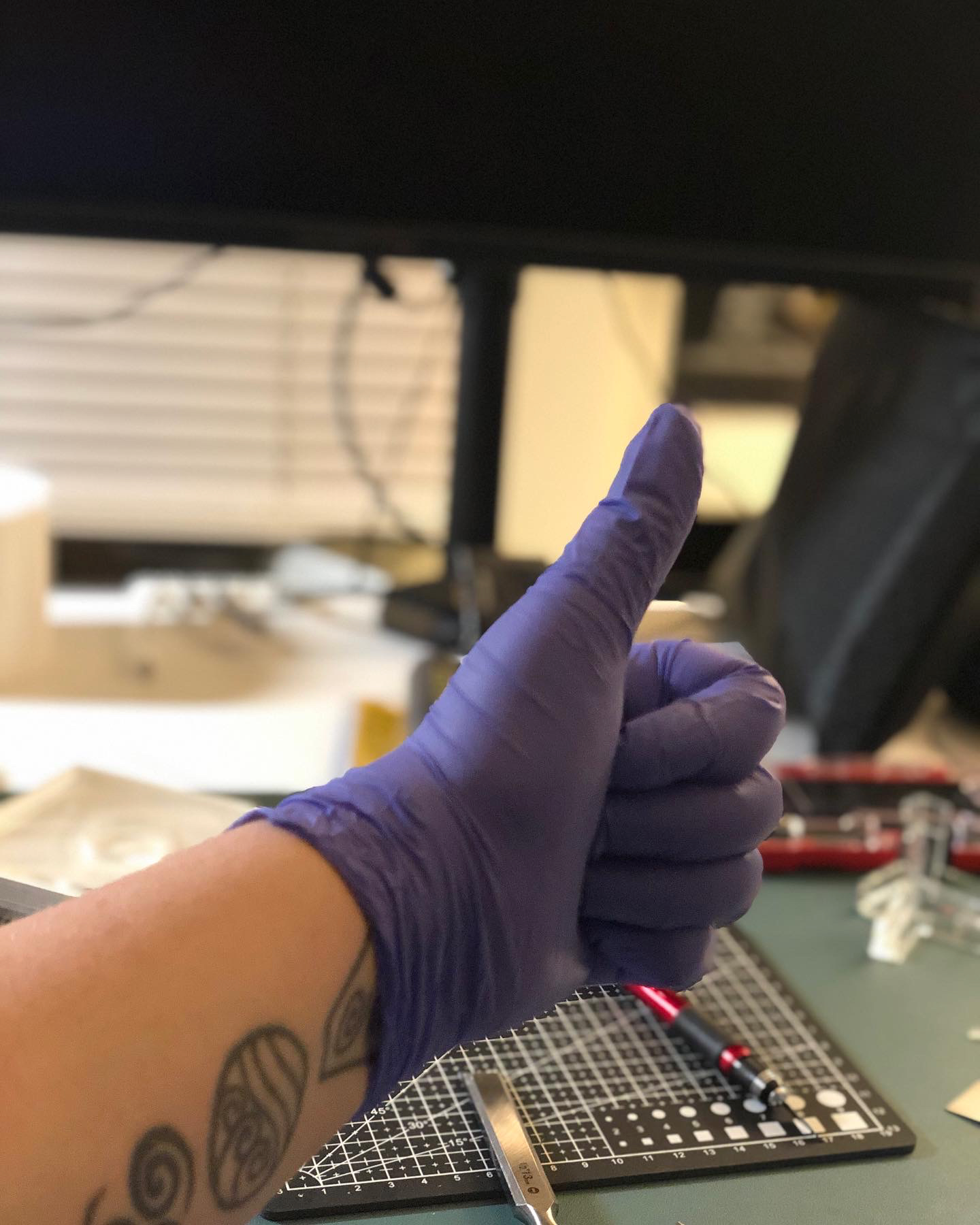 I have definitely roughed up my hands this quarter with my building methods. I can be a little reckless. I made sure to wear gloves while using the adhesive, which I'm VERY GLAD ABOUT because the adhesive splashed onto my desk when I cut the can open. Thankfully, I have a silicone pad on my desk already.
