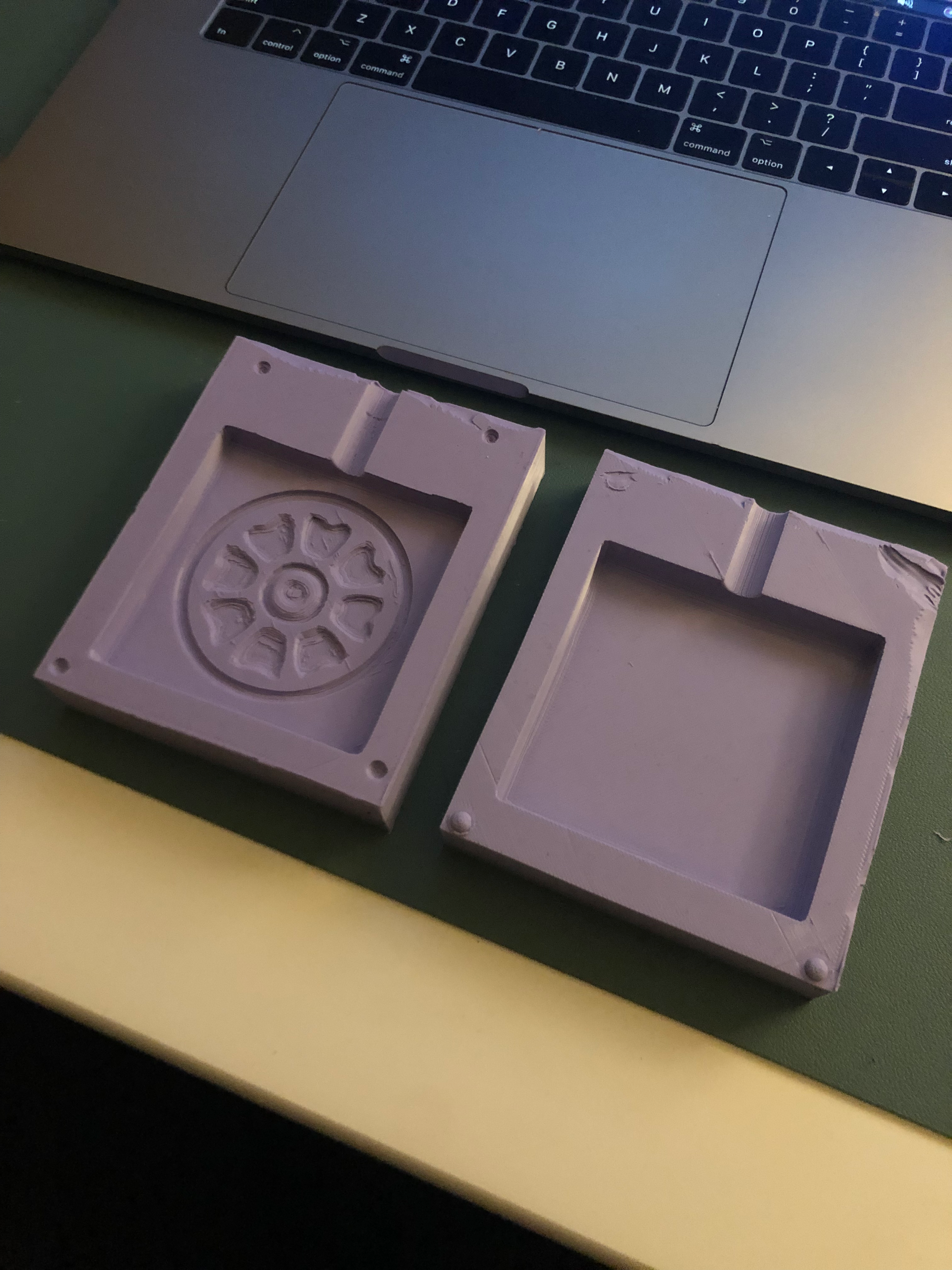 I do think the lotus pattern would show up better if I had greater difference in the heights of the icon. In future molds, I will emphasize shapes to help them retain their appearance in the casted item. I also think that I will sand my 3d prints more thoroughly because I could still see some lines from the infill pattern of my original print.